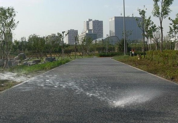 (4)露骨料透水混凝土在表面清洗時(shí),由于表面沖洗劑對(duì)混凝土洗蝕過(guò)深,致使顆粒的粘結(jié)變得薄弱,針對(duì)這種情況,所以清洗時(shí)用中性的的洗液進(jìn)行清洗,切不可用高酸性的洗液清洗表面;