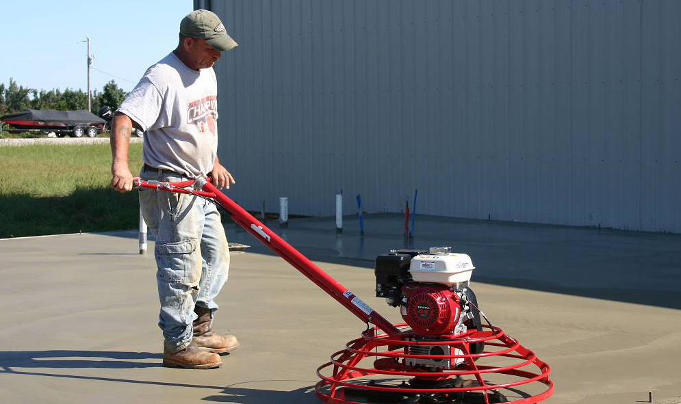 手扶式抹光機(jī)是最常用的。抹光機(jī)的刀片略微傾斜,向順時針方向旋轉(zhuǎn),如同吊扇一一個